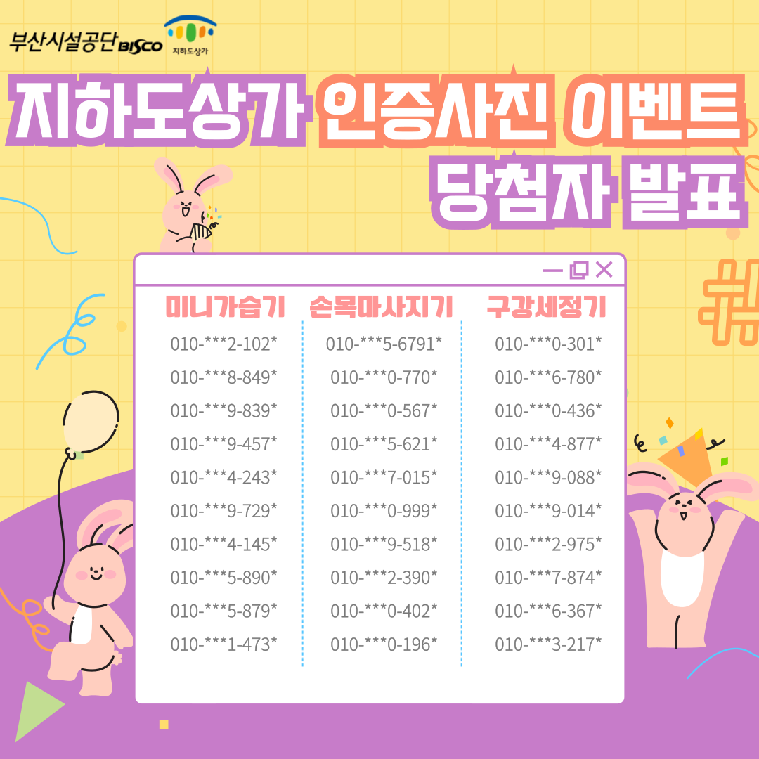 지하도상가 ON나 페스티벌 이벤트 당첨자를 발표합니다!